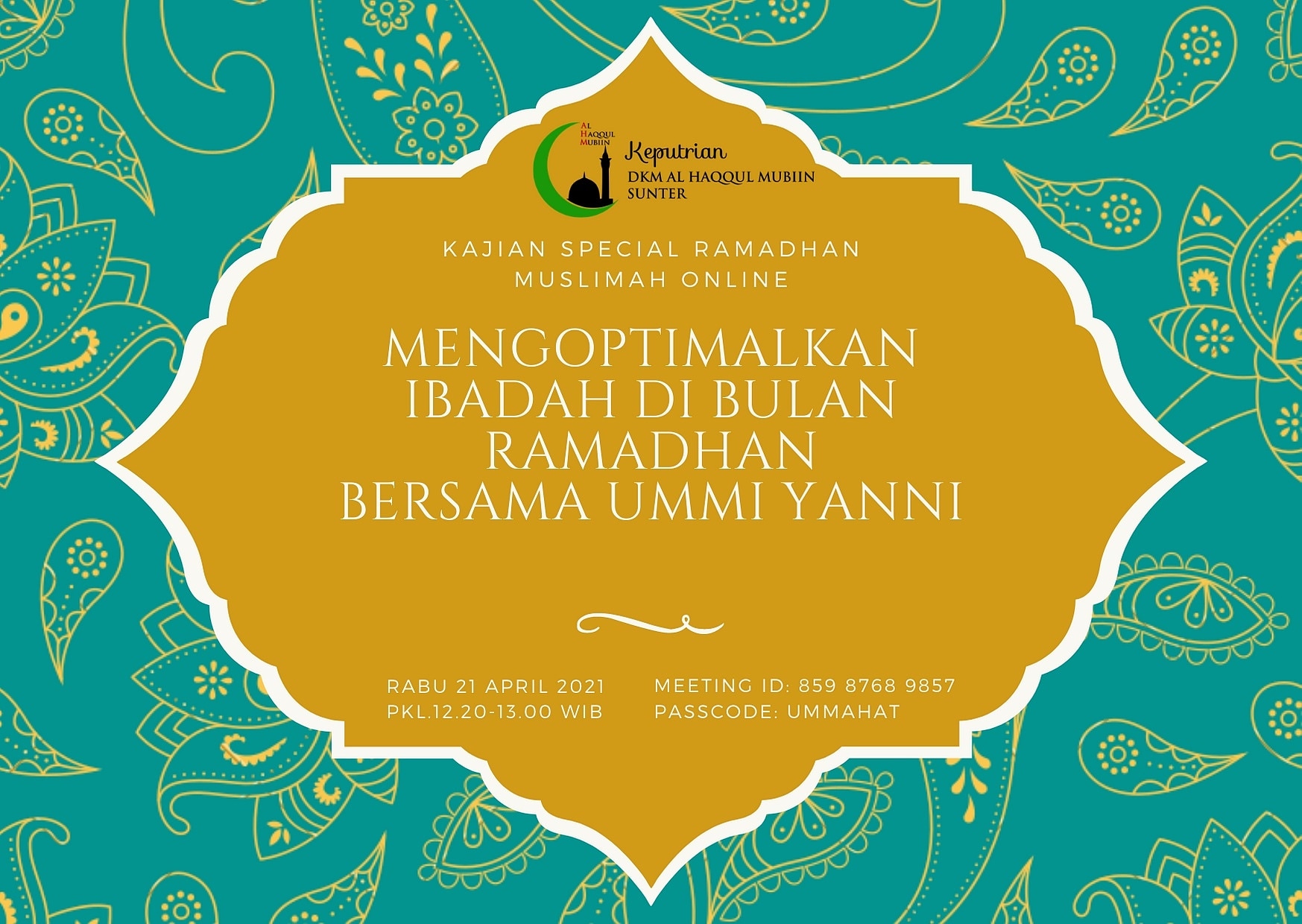 ? Judul : *Mengoptimalkan Ibadah Di Bulan Ramadhan*? ?Ikuti via Aplikasi Zoom klik Join Meeting,