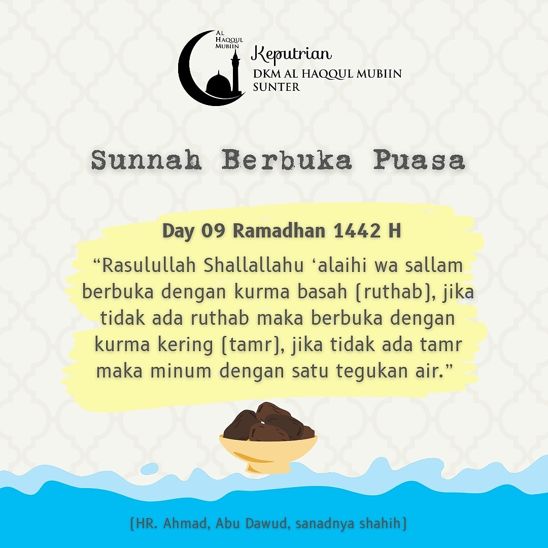 4 years ago PublicAPA YANG DIMAKAN KETIKA BERBUKA? Rasulullah Shallallahu’alaihi wassalam menganjurkan kepada umatnya agar berbuka puasa dengan: Ruthob (Kurma masak berwarna coklat muda masih basah) Tamr (Kurma matang yang sudah kering) Air Hal ini berdasarkan dalil yang shohih yaitu: حَدّثَنَا أَحْمَدُ بْنُ حَنْبَلٍ، حَدّثَنَا عَبْدُ الرّزّاقِ، حَدّثَنَا جَعْفَرُ بْنُ سُلَيْمَانَ، حَدّثَنَا ثَابِتٌ الْبُنَانِيّ، أَنّهُ سَمِعَ أَنَسَ بْنَ مَالِكٍ يَقُولُ: كَانَ رَسُولُ اللّهِ صَلّى اللهُ عَلَيْهِ وَسَلّمَ يُفْطِرُ عَلَى رُطَبَاتٍ قَبْلَ أَنْ يُصَلّـِيَ، فَإِنْ لَمْ تَكُنْ رُطَبَاتٌ، فَعَلَى تَمَرَاتٍ، فَإِنْ لَمْ تَكُنْ حَسَا حَسَوَاتٍ مِنْ مَاءٍ (Imam Abu Dawud berkata) ‘Telah mengabarkan kepada kami Ahmad bin Hanbal, (Dia Ahmad bin Hanbal berkata) ‘Telah menceritakan kepada kami Abdurrazaq, (Dia Abdurrazaq berkata), ‘Telah menceritakan kepada kami Ja’far bin Sulaiman, (Dia Ja’far bin Sulaiman berkata), ‘Telah mengabarkan kepada kami Tsabit al-Bunaniy, bahwa dia telah mendengar dari Anas bin Malik (Radhiyallahu’anhum) berkata, “Rasulullah Shallallahu’alahi wassalam berbuka dengan beberapa ruthob (Kurma matang namun masih basah) sebelum melakukan sholat, jika tidak ada Ruthob maka dengan beberapa Tamr (kurma matang kering), jika itu tidak ada maka beliau meminum air beberapa kali tegukan”. Hadits Shahih, [HR. Abu Dawud no. 2356, At-Tirmidzi no. 696, Ad-Daruquthni no. 2278, Al-Hakim dalam al-Mustadrak 1/597 no. 1576, Al-Baihaqy 4/239. Dihasankan oleh Syaikh Albani di Irwaul Gholil no. 922