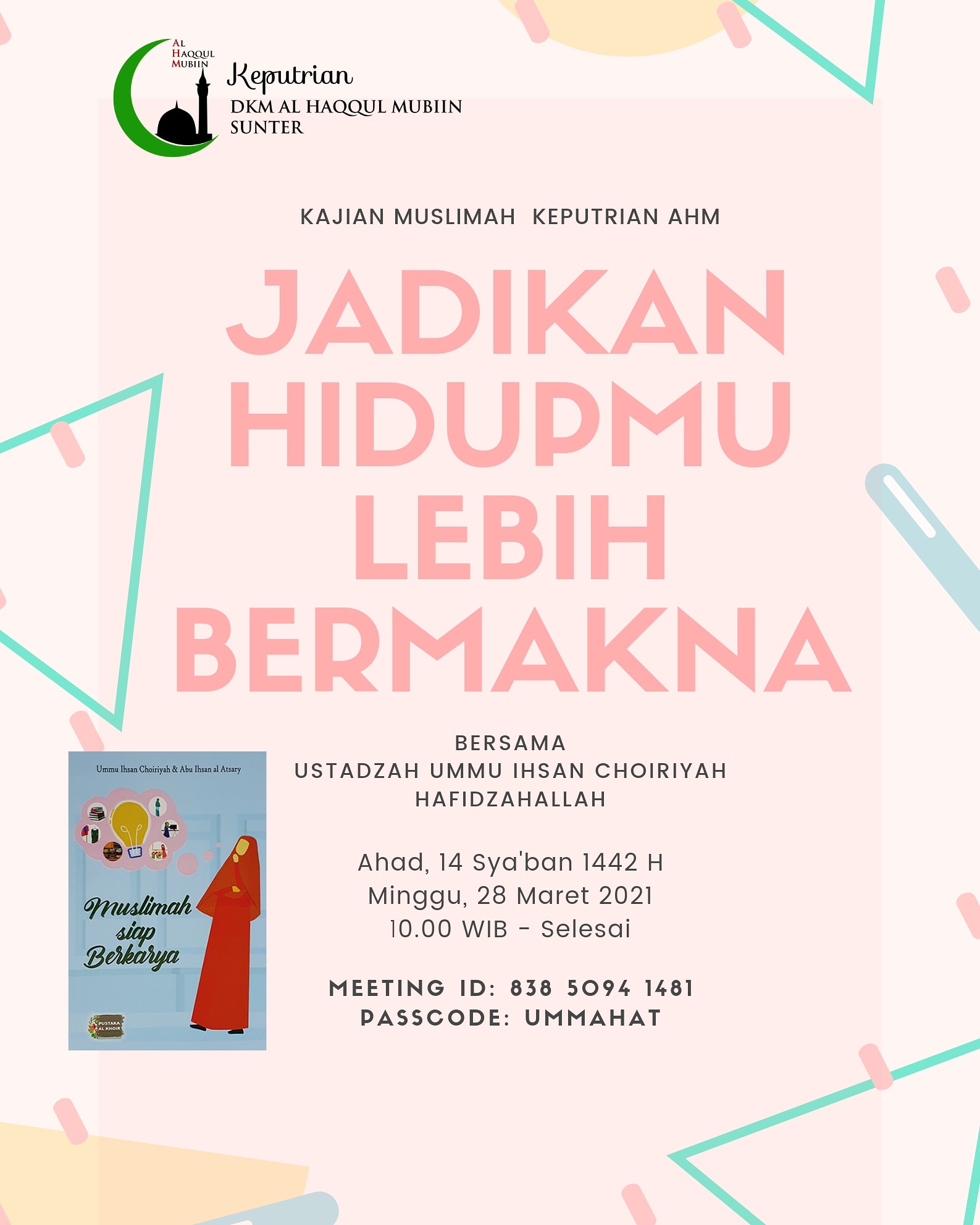 Kajian Keputrian mengundang Ukhti Fillah join di Kajian online, Insyaa Allah pada :