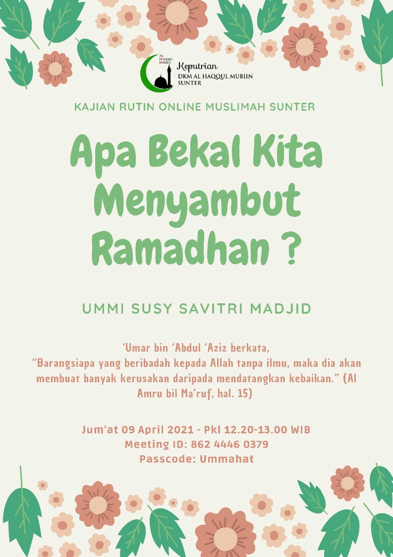 ? Judul : *Apa Bekal Kita Menyambut Ramadhan ?*? ?Ikuti via Aplikasi Zoom klik Join Meeting,
