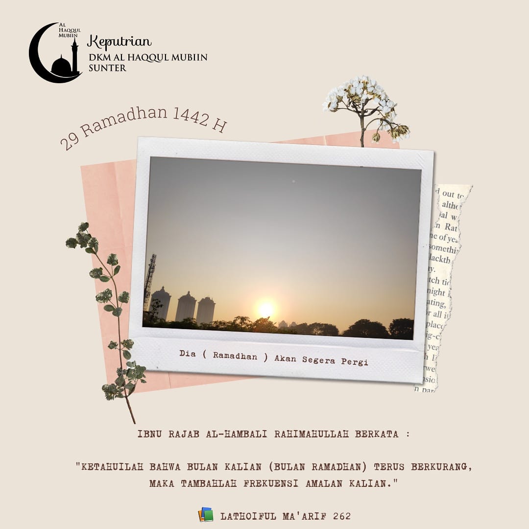 "Ketahuilah bahwa bulan kalian (bulan Ramadhan) terus berkurang, maka tambahlah frekuensi amalan kalian."