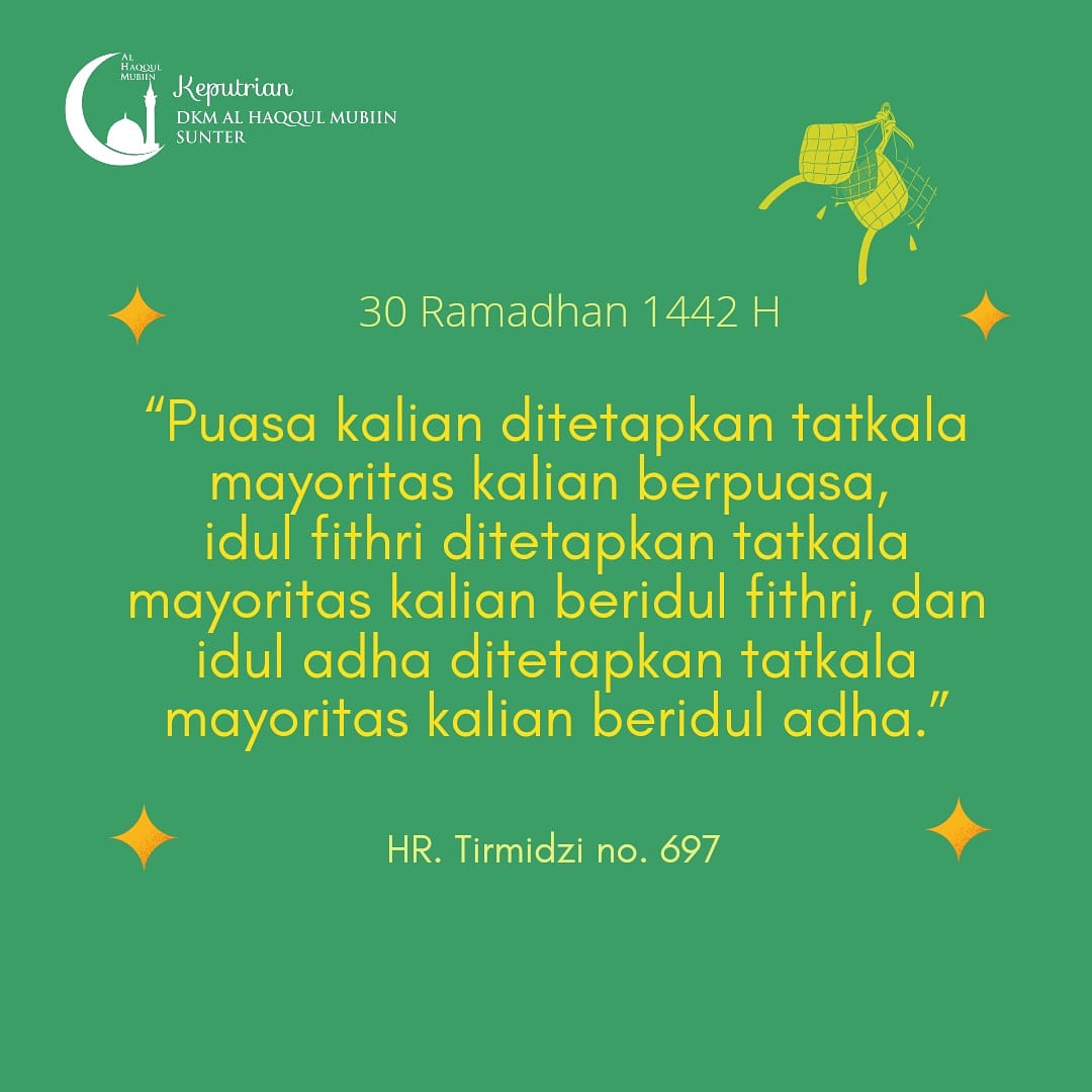 4 years ago Public“Puasa kalian ditetapkan tatkala mayoritas kalian berpuasa, idul fithri ditetapkan tatkala mayoritas kalian beridul fithri, dan idul adha ditetapkan tatkala mayoritas kalian beridul adha.”