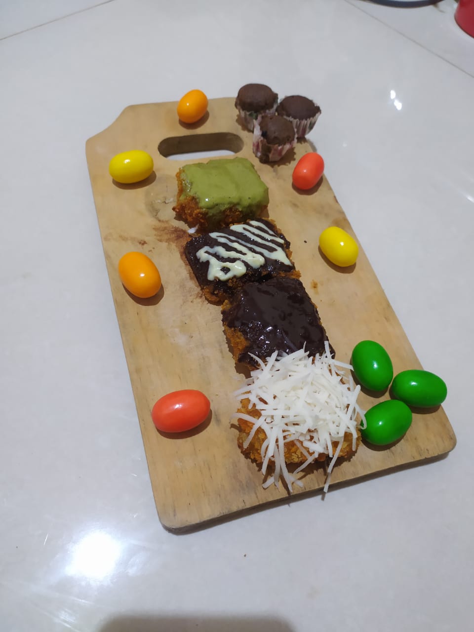 1. Masukan adonan pertama yang sudah dipotong kotak kotak kedalam adonan tepung lalu gulingkan diatas tepung panir