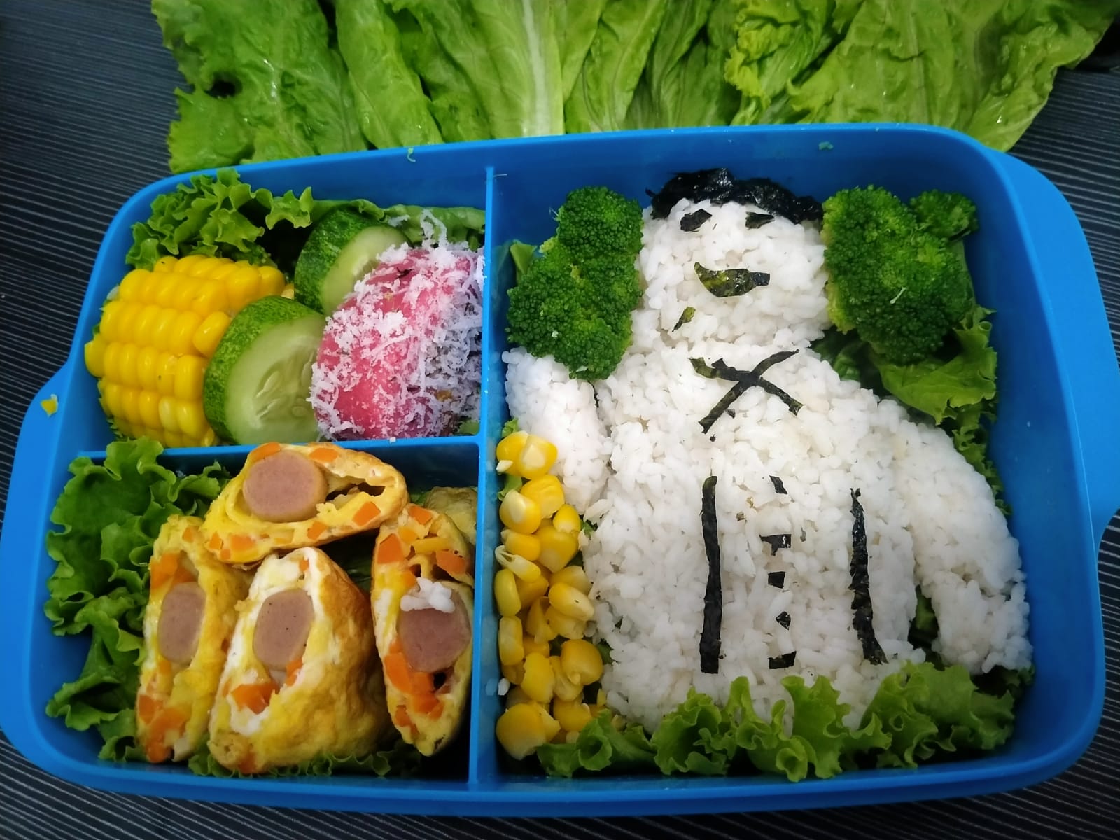 1. Nasi 1 mangkuk2. 4 potong Telur gulung sosis wortel