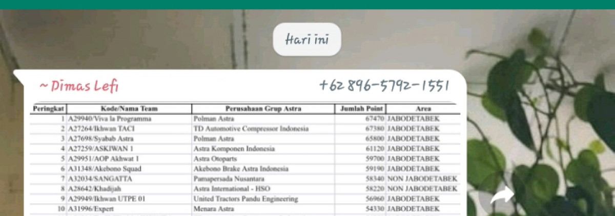 Alhamdulillah Team Ukhti SAM masuk 20 besar peringkat ke 16 untuk nasional