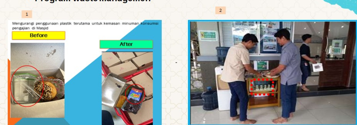 1.Mengurangi limbah plastik dengan mengganti kemasan minuman plastik di  kegiatan Masjid