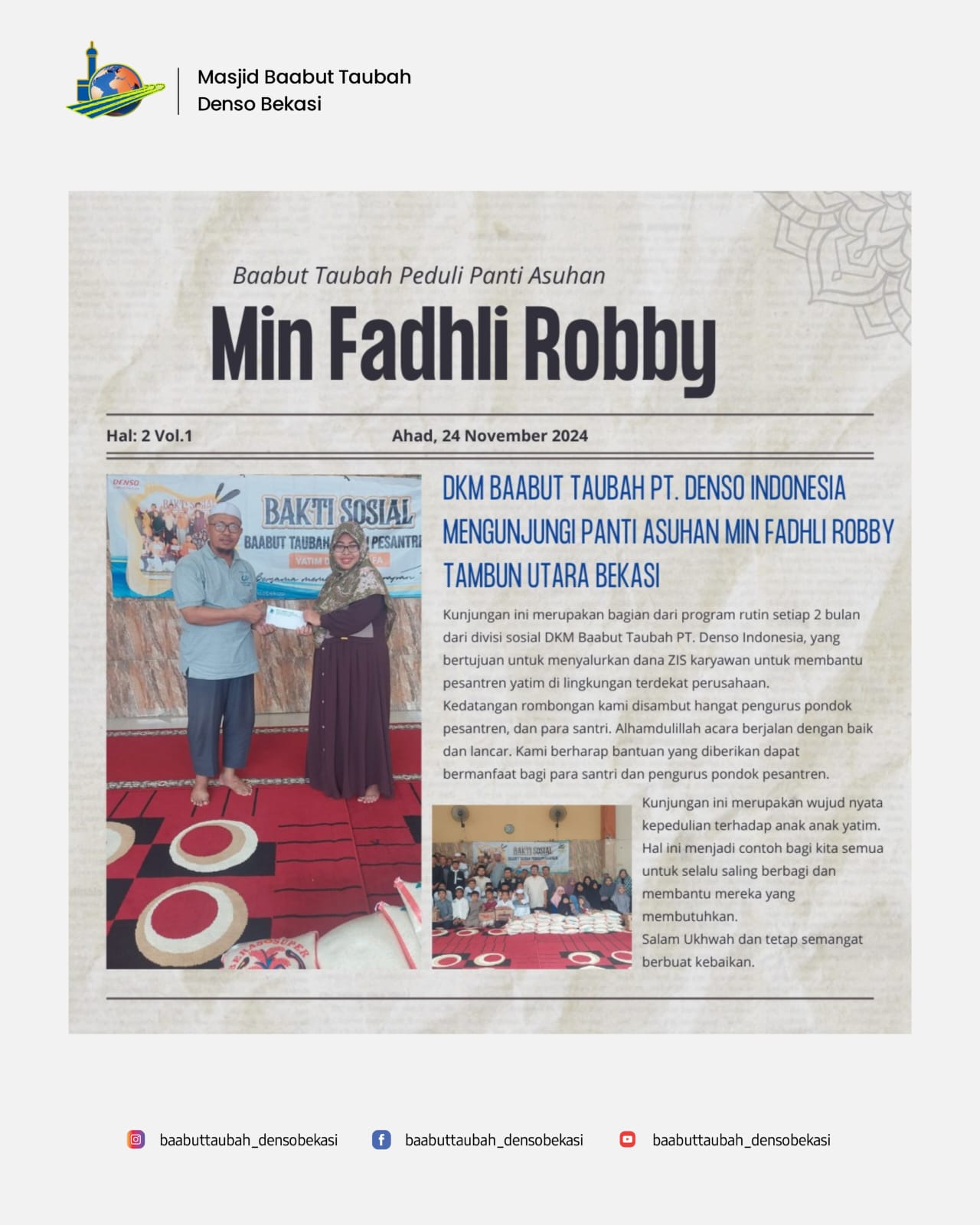Assalamu'alaikum wrwb,,alhamdulillah wa syukurillah, salah satu kegiatan DKM Baabut Taubah PT. Denso Indonesia dalam memberikan kontribusi nyata unyuk lingkungan sekitar perusahaan dapat berjalan dengan baik san lancar,