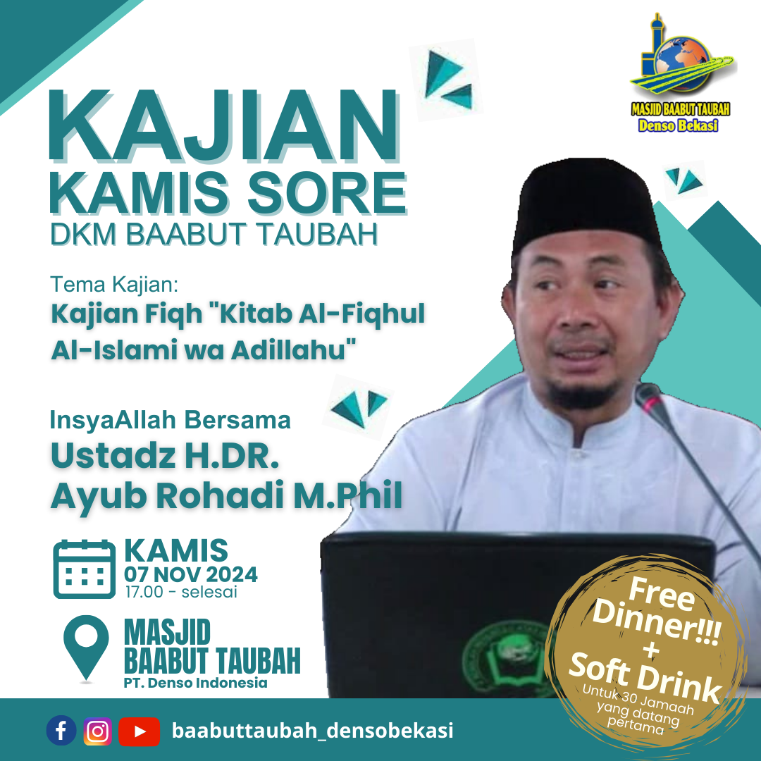 🕌 *Masjid Baabut Taubah PT.Denso Bekasi Plant.*👳🏻♀️ *Ust. DR .Ayub Rohadi M.Phil*