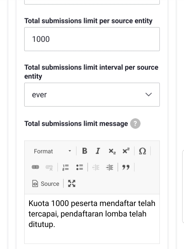 kuota 1000 peserta untuk lomba tahfidz 30 juz untuk pelajar sma dan mahasiswa telah tercapai.pendaftaran telah ditutup.