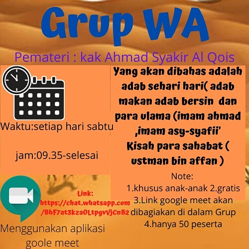Ajak teman-teman kita untuk mengetahui siapa para sahabat Nabi shalallahu 'alaihi wasallam, para ulama dan adab harian (seperti makan dan setelah bersin)