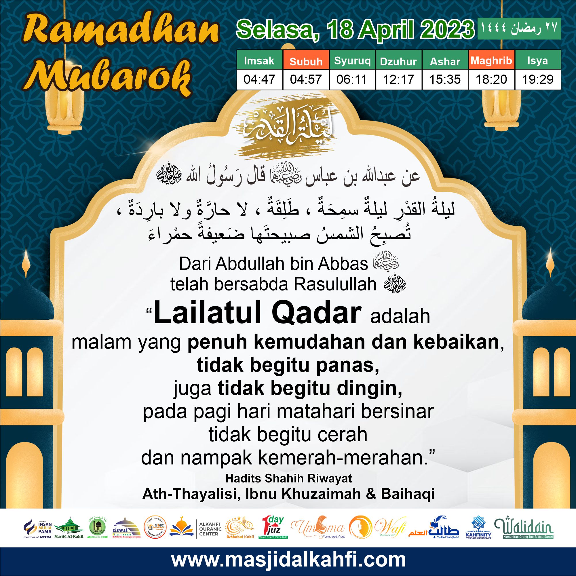 โLailatul qadar adalah malam yang penuh kelembutan, cerah, tidak begitu panas, juga tidak begitu dingin, pada pagi hari matahari bersinar lemah dan nampak kemerah-merahan.โ
