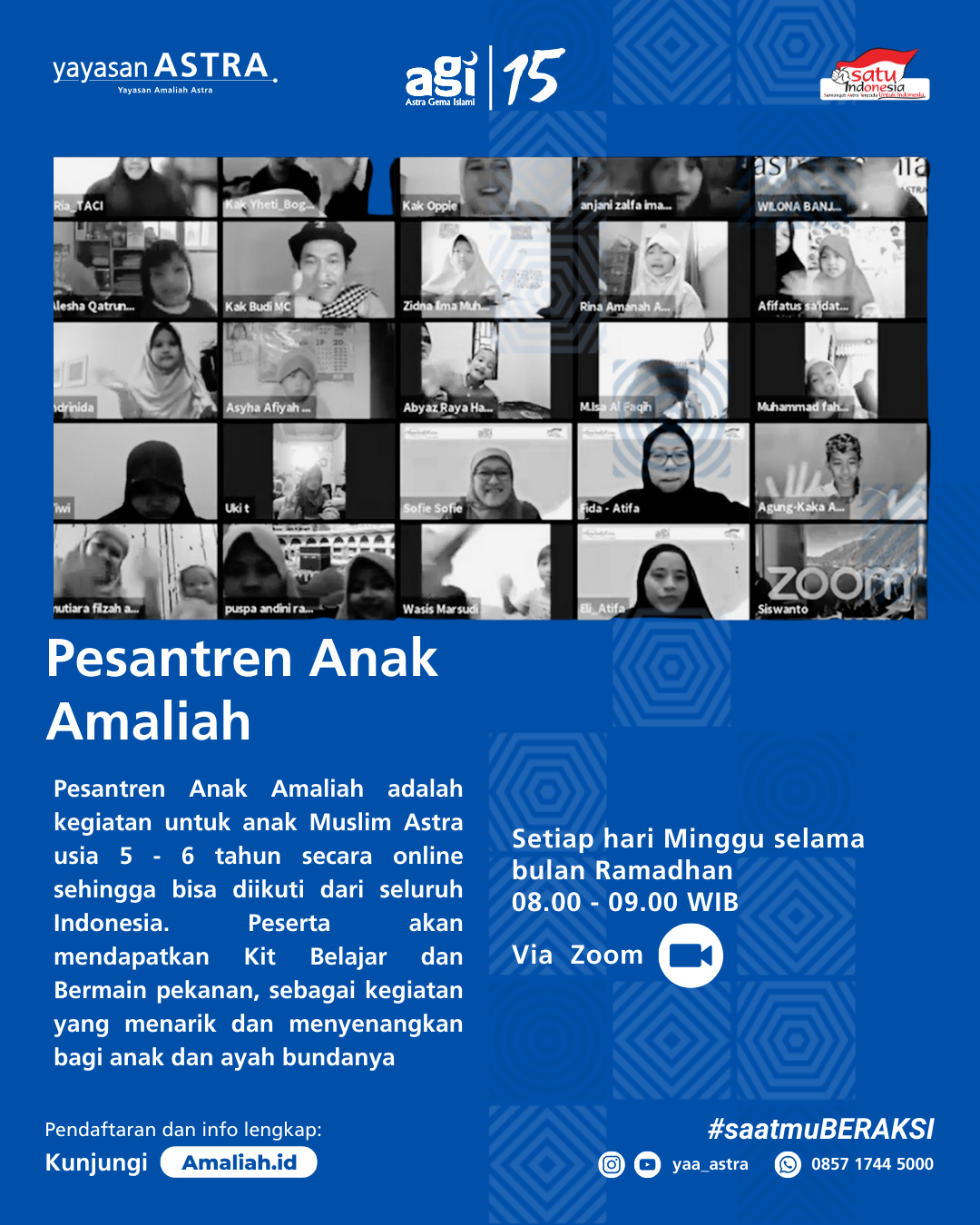 Yuk kita isi waktu luang selama Ramadhan bersama Kakak-kakak Astra setiap minggu di *PESANTREN ANAK AMALIAH*