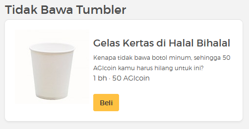 50 AGIcoin setiap butuh gelas kertas.
