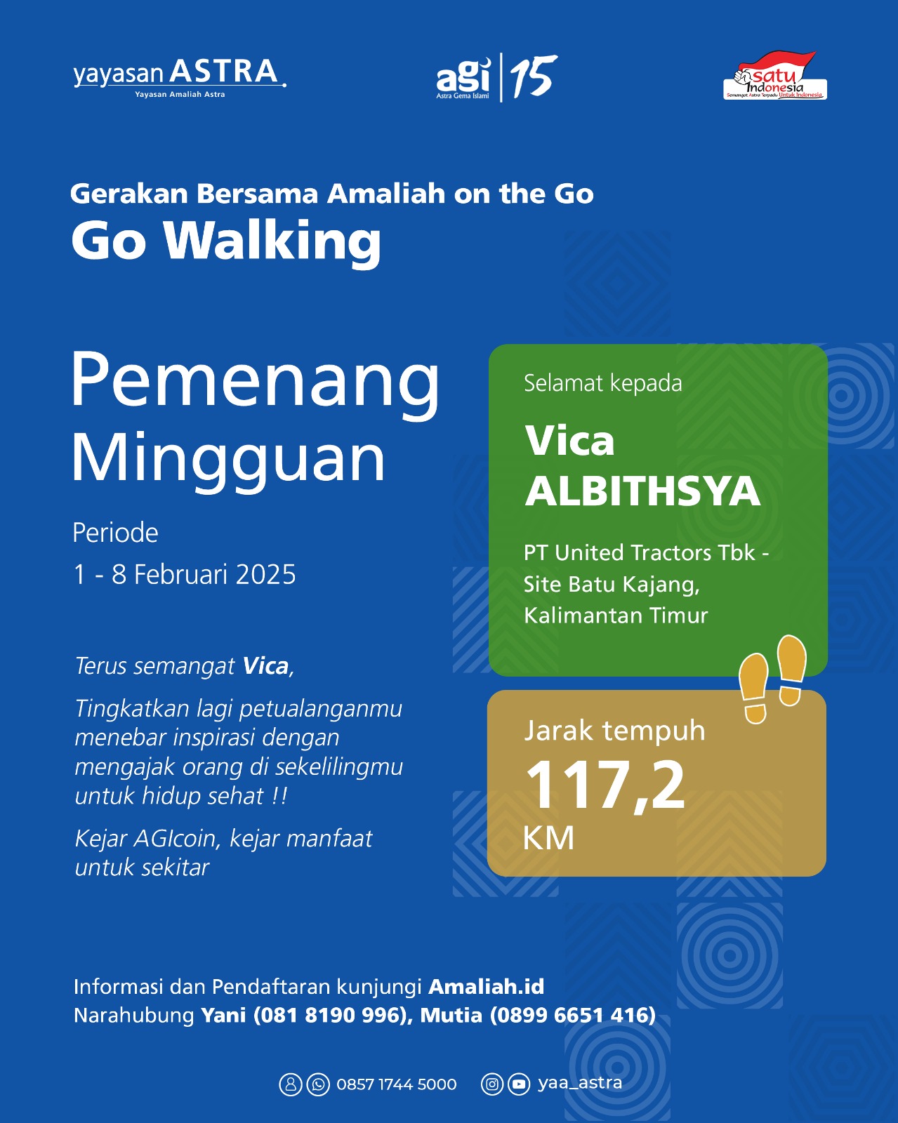 Selamat kepada *VICA ALBITHSYA* (PT UNITED TRACTORS ) atas pencapaiannya dalam berkontribusi pada Pertualangan Sehat :