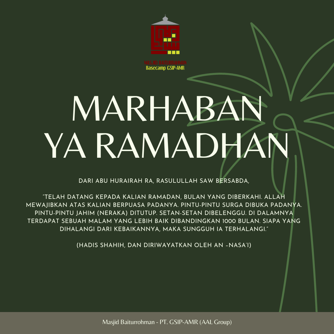 Dari Abu Hurairah RA, Rasulullah SAW bersabda, “Telah datang kepada kalian Ramadan, bulan yang diberkahi. Allah mewajibkan atas kalian berpuasa padanya. Pintu-pintu surga dibuka padanya. Pintu-pintu Jahim (neraka) ditutup. Setan-setan dibelenggu. Di dalamnya terdapat sebuah malam yang lebih baik dibandingkan 1000 bulan. Siapa yang dihalangi dari kebaikannya, maka sungguh ia terhalangi.” (Hadis shahih, dan diriwayatkan oleh An –Nasa’i)
