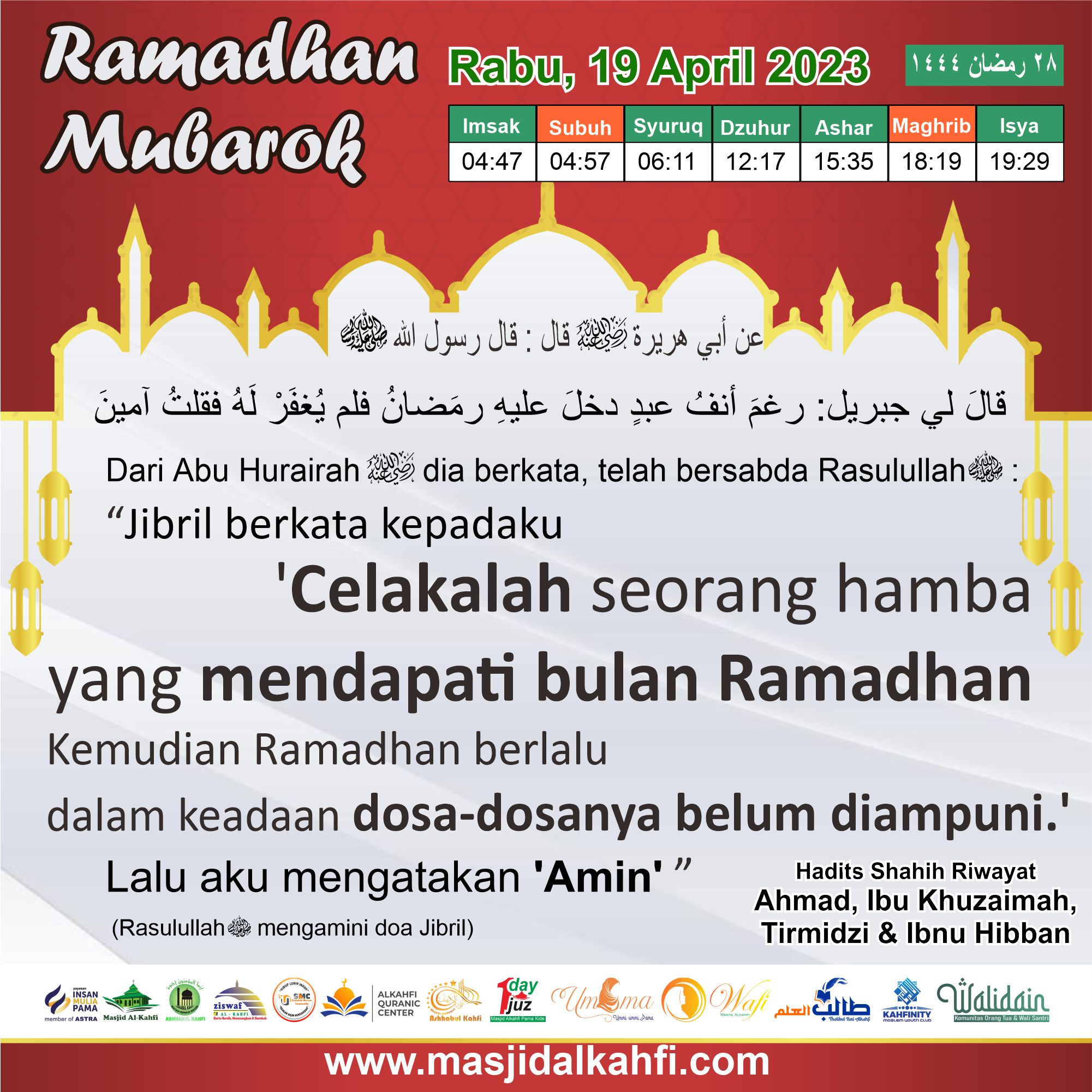 'Celakalah seorang hamba yang mendapati bulan Ramadhan kemudian Ramadhan berlalu dalam keadaan dosa-dosanya belum diampuni.'Lalu aku mengatakan Amin (mengamini doa jibril)" .....