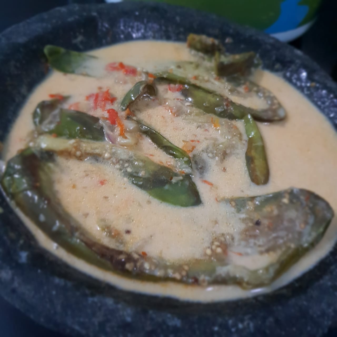 1. Potong terong, lalu goreng hingga empuk. Tiriskan.