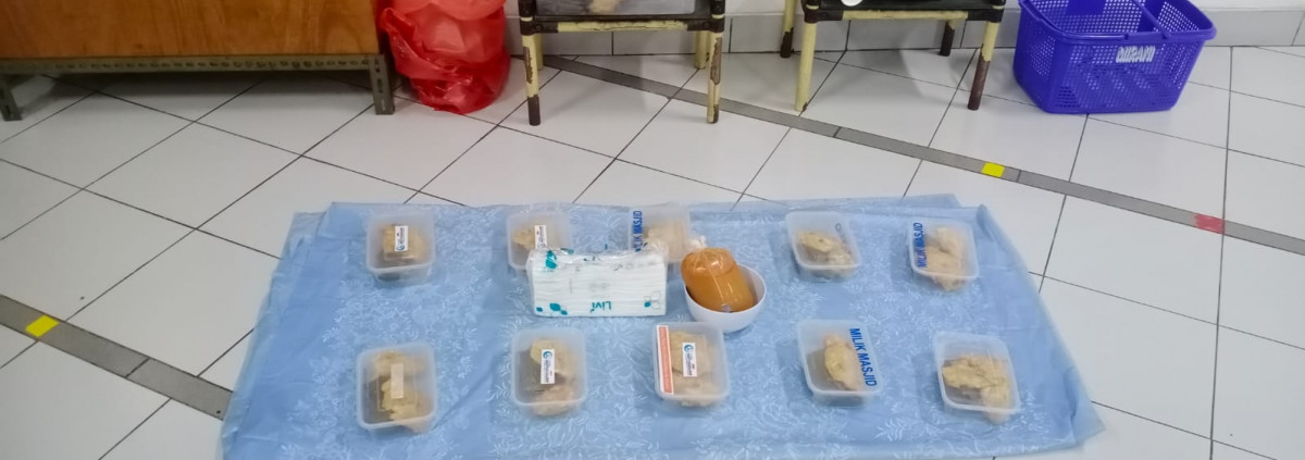 Agus, salah satu karyawan subcont sekaligus penjaga Masjid, menata makanan berbuka dengan mengatur sedemikian rapi, sehingga jamaah dapat langsung makan dari bagian yang telah ditentukan. Sebelumnya memang masih dipersilahkan untuk mengambil sendiri-sendiri, sehingga menimbulkan antrian antar jamaah.