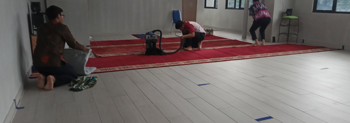 Mempersiapkan masjid untuk keperluan sholat Jumat Civitas Akademika Politeknik Astra.