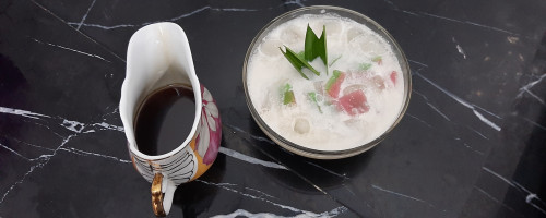 -Potongan buah (buah naga, kiwi, kelapa muda) ditambah agar-agar waluh