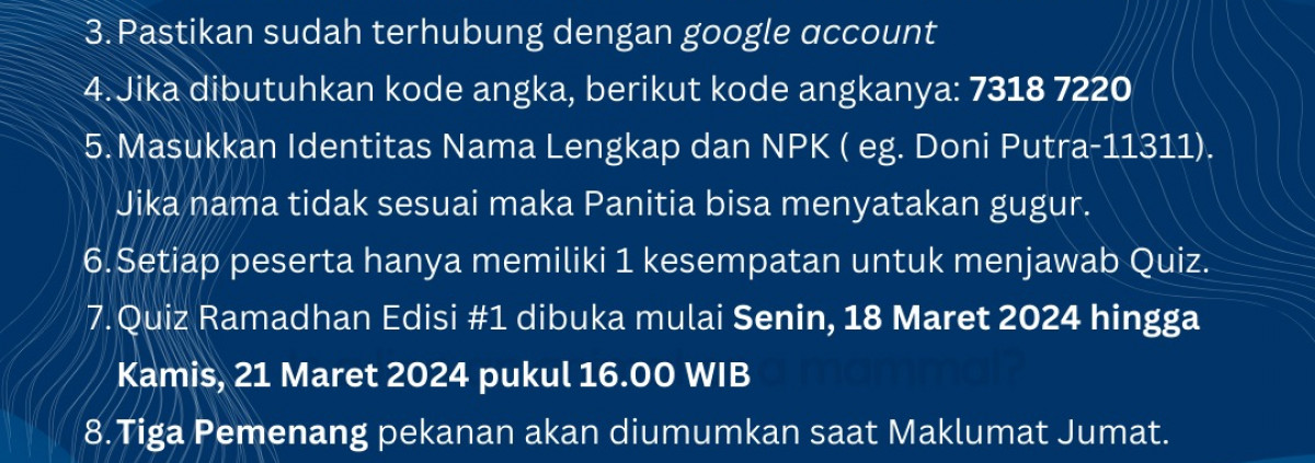 Detail ketentuan bisa dilihat di poster informasi. Pemenang akan diumumkan saat Maklumat Jumat,