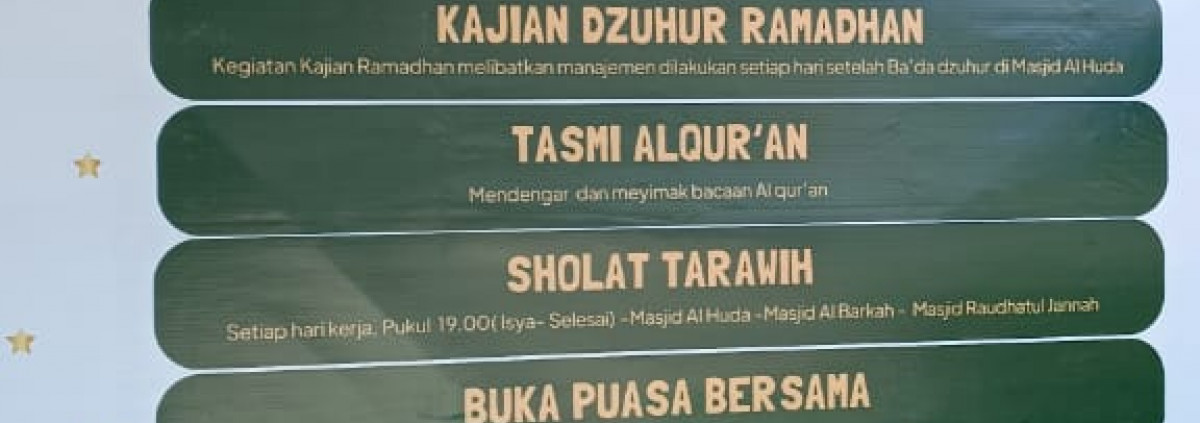 Bismillahirrahmanirrahim, Alhamdulillah untuk memudahkan sosialisasi Rangkaian Kegiatan Ramadhan maka pengurus DKM memasang spanduk besar di beberapa titik. Semoga semakin banyak jamaah yang hadir. Barakallahu fiikum Tag Persiapan Ramadan