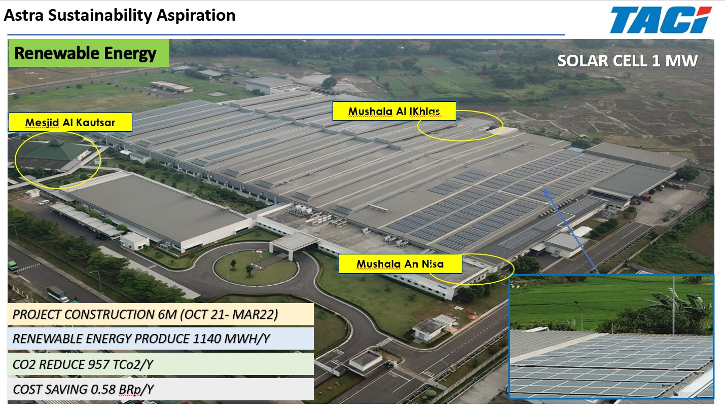 3. Biaya operasional yang rendah: Setelahmenginstalnya, biaya operasionalnya sangat rendah, karena tidak ada biaya listrik.Sejak tahun 2022, TACI telah menginstall sollar panel dan akan meningkatkan kapasitasnya di Tahun 2024 ini, Bismillah semoga Allah mudahkan. Energi dari solar panel tersebut dialokasikan juga untuk Mesjid dan Musala yang ada di TACI.