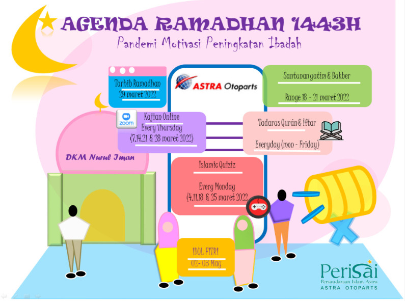 Insyallah DKM Nurul Iman Astra Otoparts, akan mempersembahkan Agenda Ramadhan 1443H ini dengan kegiatan-kegiatan yang insyallah menarik, menambah semangat dan menambah keimanan kita kepada Allah SWT.@astragemaislami #agi2022
