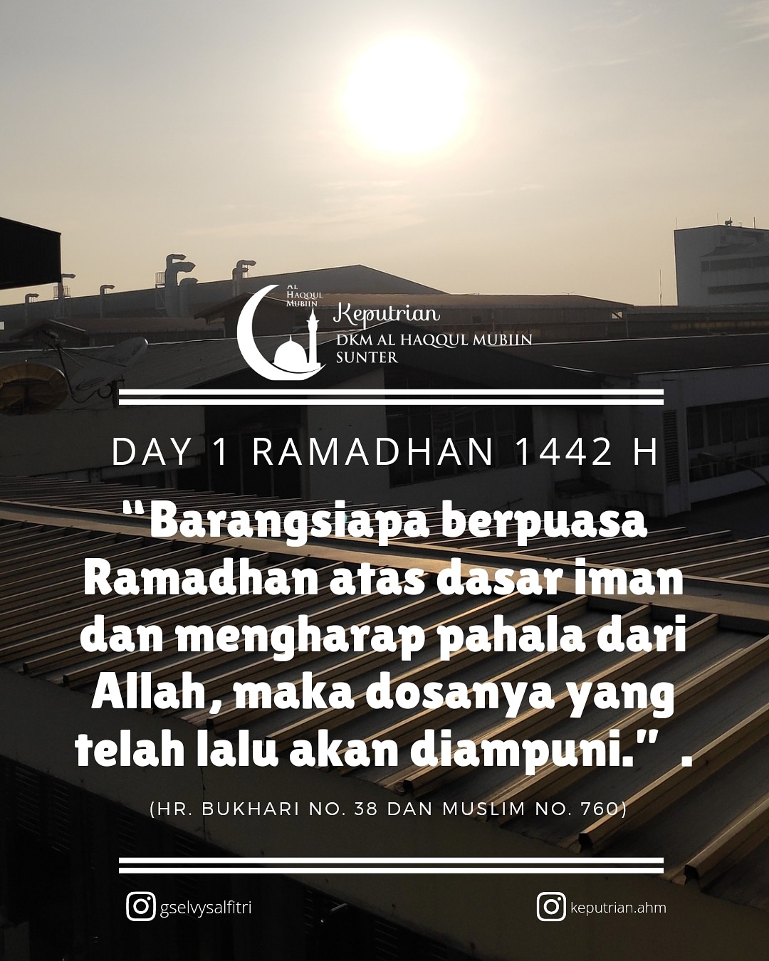 “Barangsiapa berpuasa Ramadhan atas dasar iman dan mengharap pahala dari Allah, maka dosanya yang telah lalu akan diampuni.” (HR. Bukhari no. 38 dan Muslim no. 760).