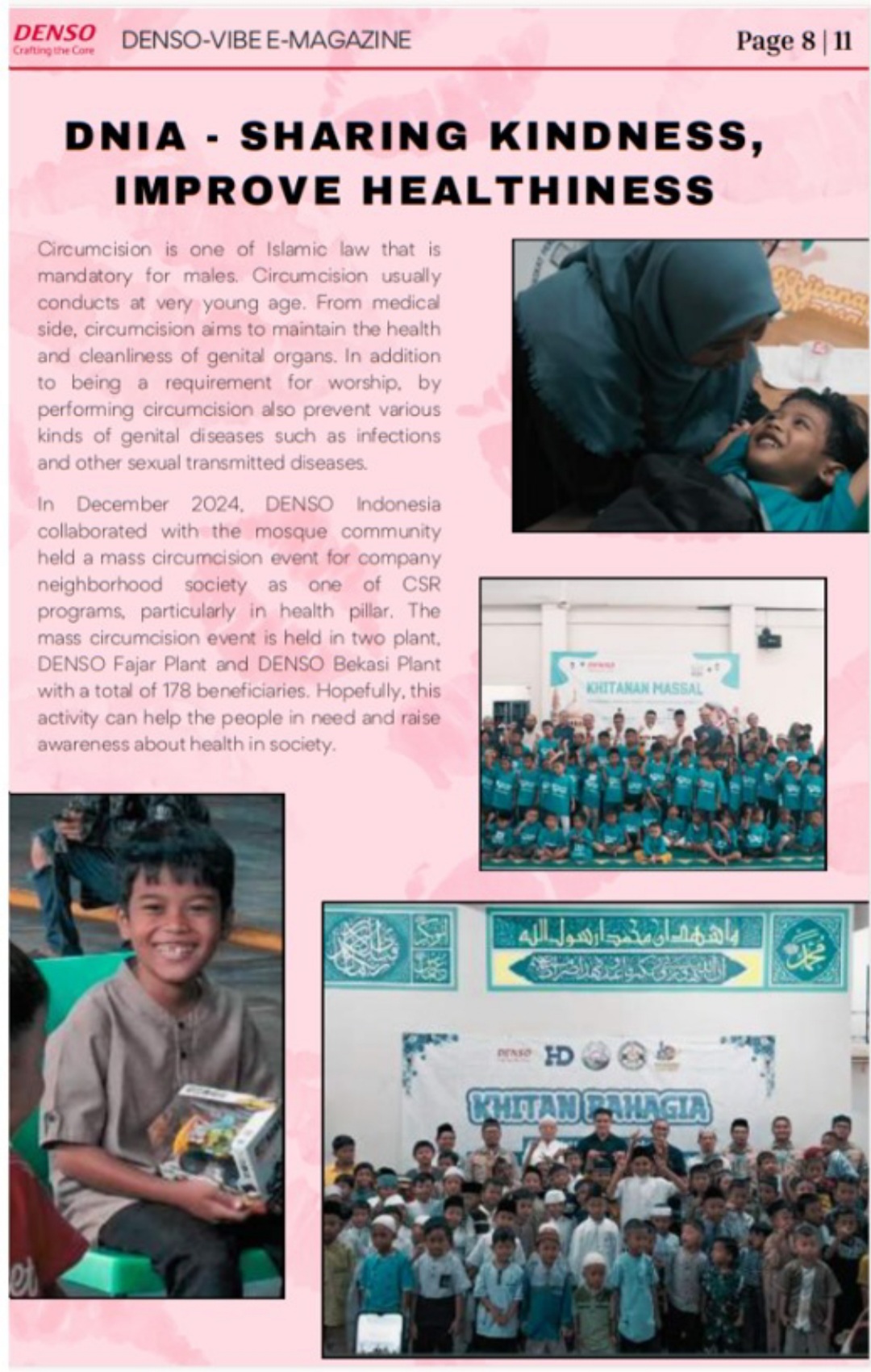 Kegiatan Khitanan Masal pada desember 2024 kemarin yang dilaksanakan oleh DKM Baabut Taubah dan DKM Baabur Rahmah PT. Denso Indonesia masuk dalam majalah Denso Global,,