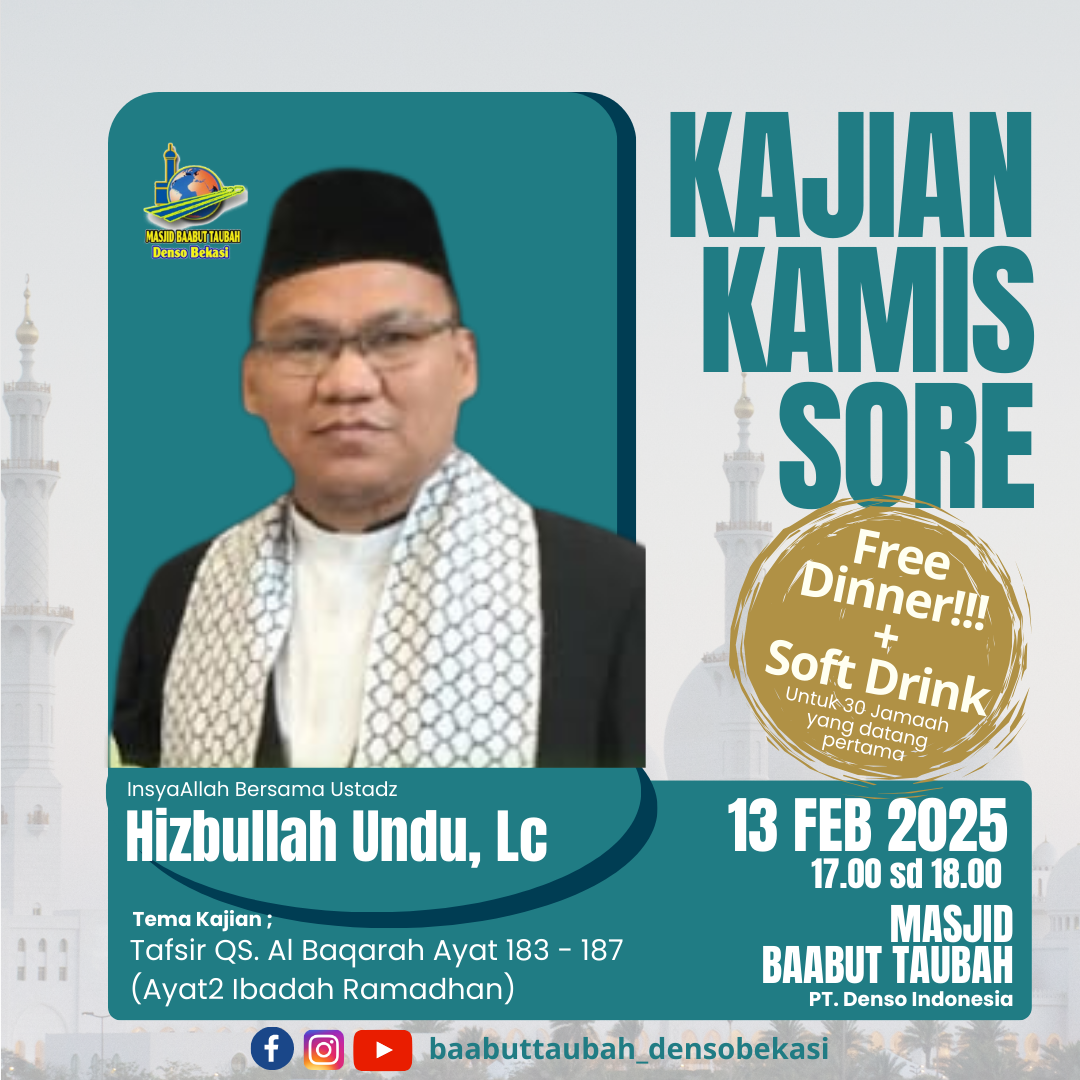 🕌 *Masjid Baabut Taubah PT.Denso Bekasi Plant.*👳🏻♀️ *Ust. H.Hizbullah Undu.Lc Al Hafidz*