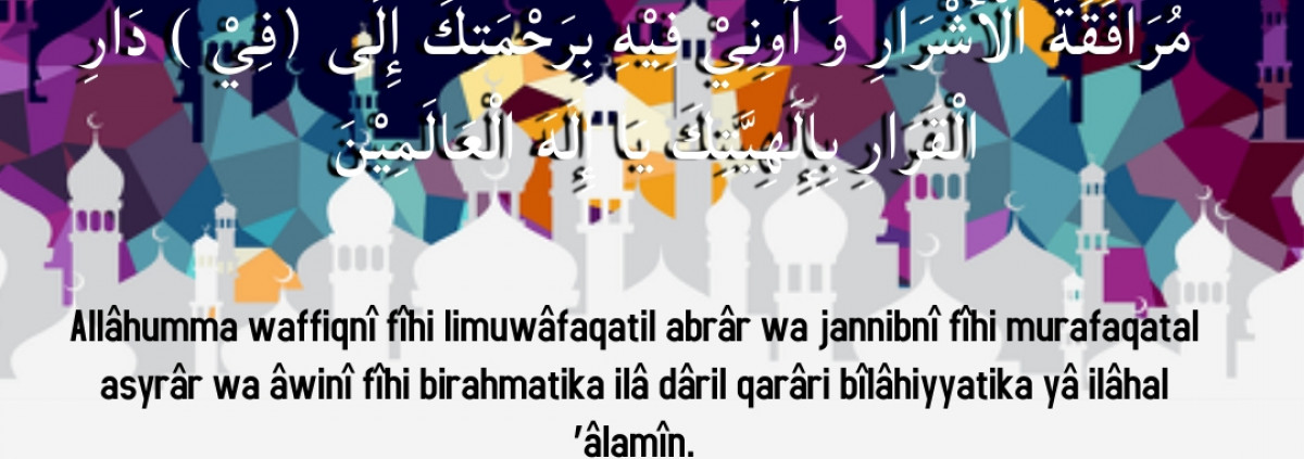 Ya Allah, anugerahilah kepadaku di bulan ini agar supaya bisa bergaul dengan orang-orang baik, dan jauhkanlah aku dari bergaul dengan orang-orang jahat. Berilah aku perlindungan di bulan ini dengan rahmat-Mu sampai ke alam akhirat. Demi keesaan-Mu wahai Tuhan semesta alam.
