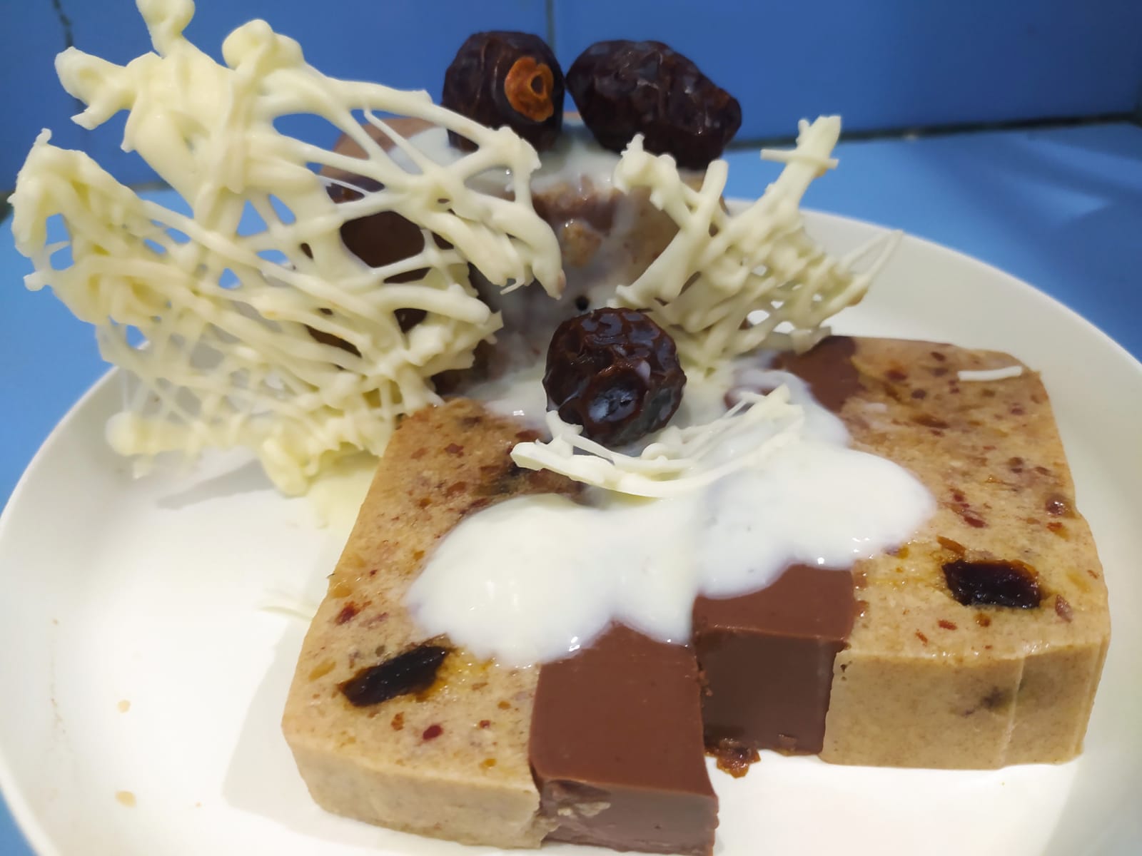 Campurkan Susu, gula pasir, agar2 dan masak sampai ada gelembung kecil, kemudian masukkan kurma yang sudah dihaluskan, aduk sampai rata.