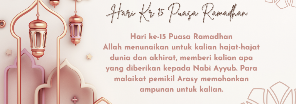 Hari ke-15 Puasa Ramadhan Allah menunaikan untuk kalian hajat-hajat dunia dan akhirat, memberi kalian apa yang diberikan kepada Nabi Ayyub. Para malaikat pemikil Arasy memohonkan ampunan untuk kalian. Perusahaan Grup Astra Astra Otoparts - Divisi Adiwira Plastik Wilayah Grup Astra Bogor