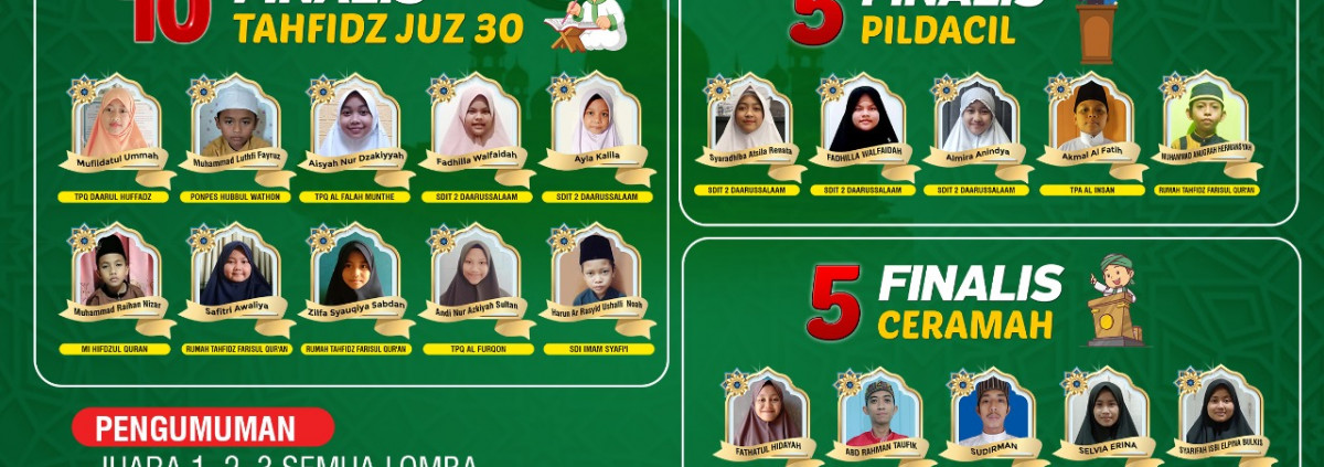 Dan masih ada dua finalis lagi yang penampilanya tidak kalah menawan. Juri pun memutuskan Juara 1 Fathatul Hidayah, juara 2 Abdul Rahman dan Juara ke 3 Selvia Erina.