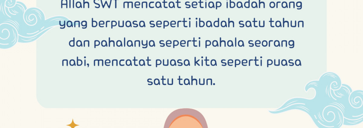Allah SWT mencatat setiap ibadah orang yang berpuasa seperti ibadah satu tahun dan pahalanya seperti pahala seorang nabi, mencatat puasa kita seperti puasa satu tahun.