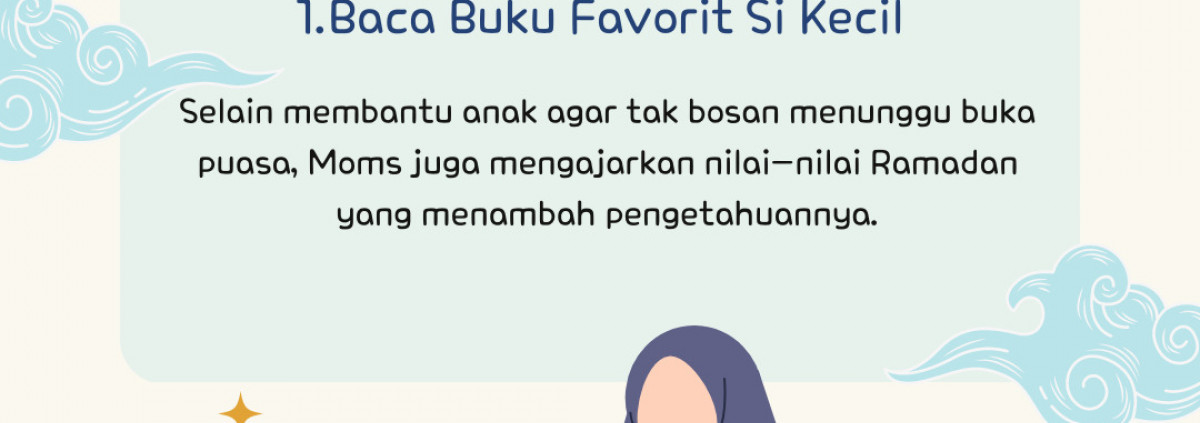Baca Buku Favorit Si Kecil Selain membantu anak agar tak bosan menunggu buka puasa, Moms juga mengajarkan nilai-nilai Ramadan yang menambah pengetahuannya.