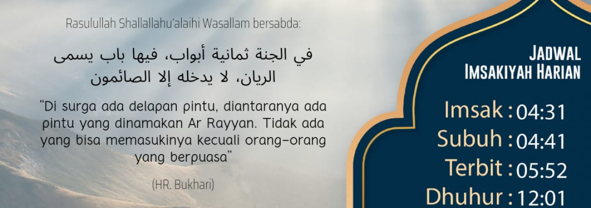 *Jum'at, 31 Maret 2023* Semoga dengan puasa ramadhan ini, kita bisa meraih jannahNya. Aamiin. https://www.instagram.com/p/CqbYGfTyq4T/?igshid=YmMyMTA2M2Y= *DKM ADIWIRA PLASTIK* IG : @dkmawp FB : Cinta Masjid AWP YT : DKM AWP