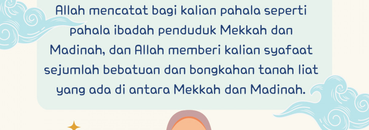 Hari ke-13: Allah mencatat bagi kalian pahala seperti pahala ibadah penduduk Mekkah dan Madinah, dan Allah memberi kalian syafaat sejumlah bebatuan dan bongkahan tanah liat yang ada di antara Mekkah dan Madinah.