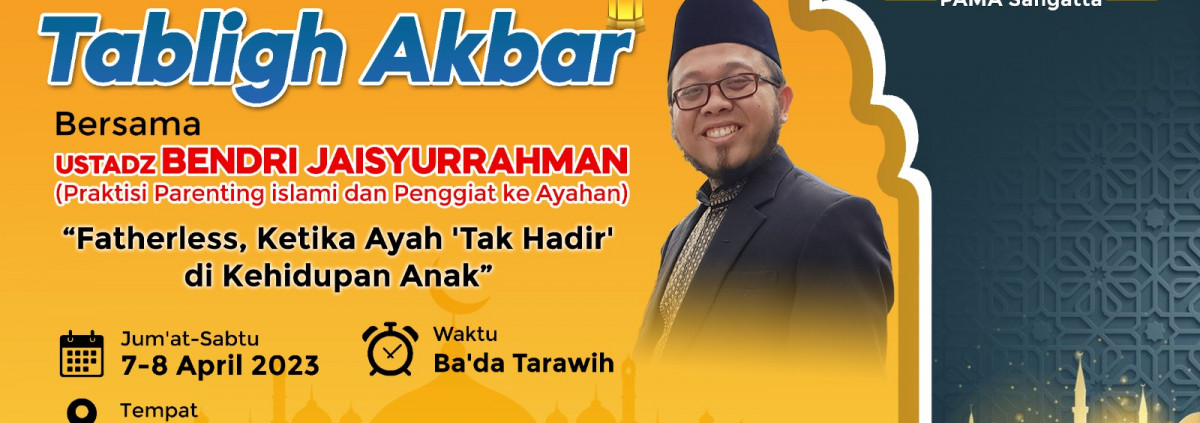 Tabligh Akbar Dkm Pama sangata yang ke 3 di Ramadhan ini spesial bersama ustadz bendri jaisyurrahman sebagai praktisi parenting Islam dan penggiat keayahan, bertempat di masjid mess Pama Al barokah,di sesi awal ini di hari Jum'at ditanggal 07 April 2023 ini dengan materi "fatherless ketika ayah tidak hadir di kehidupan anak".