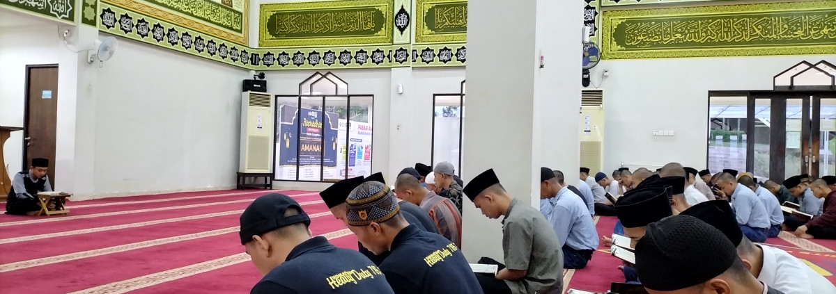 Lantunan Tilawah Al-Qur'an menjelang buka di masjid albarokah membawa ketenangan hati, sebelum berbuka sebagian jama'ah menyiapkan Snack buka, sebagian jama'ah melantunkan tilawah Al-Qur'an dengan dipandu ustadz Taufik Hidayat.