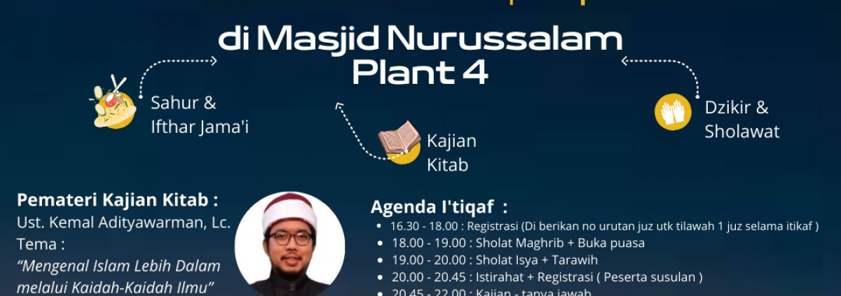 16.30 - 18.00 : Registrasi (Di berikan no urutan juz utk tilawah 1 juz selama itikaf )