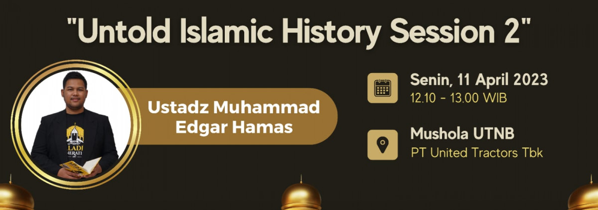Kajian Ramadhan Series Selasa, 11 April 2023 / 20 Ramadhan 1444 H (Ba'da Sholat Dzuhur berjamaah) Untold Islamic History "Untold Islamic History Session 2" Ustadz Muhammad Edgar Hamas Lc, (Mushola UTNB)