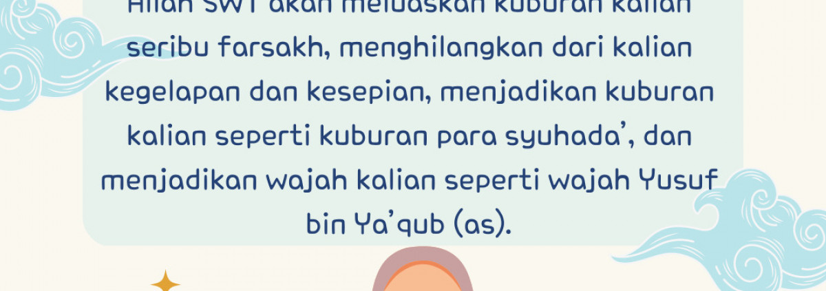 Hari ke-21: Allah SWT akan meluaskan kuburan kalian seribu farsakh, menghilangkan dari kalian kegelapan dan kesepian, menjadikan kuburan kalian seperti kuburan para syuhada’, dan menjadikan wajah kalian seperti wajah Yusuf bin Ya’qub (as).