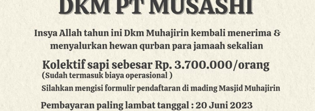 Seperti tahun tahun uang lalu , untuk tahun ini 1444H ini dkm pt musashi tetap mengadakan qurban di lingkungan perusahaan