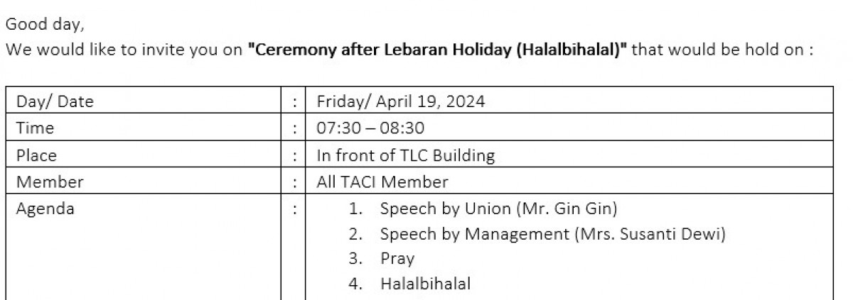 Ceremony after Lebaran Holiday ( HALAL BI HALAL)