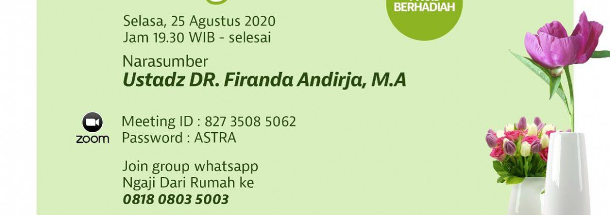 Teladan Mulia, Ummul Mu'minin Aisyah 2 | Ustadz DR Firanda Andirja MA Time: Aug 25, 2020 19:30 Bangkok Join Zoom Meeting https://us02web.zoom.us/j/82735085062?pwd=dXJYQ1pwcjlwU0t3R1BwMXYxUFNpU… Meeting ID: 827 3508 5062 Passcode: ASTRA