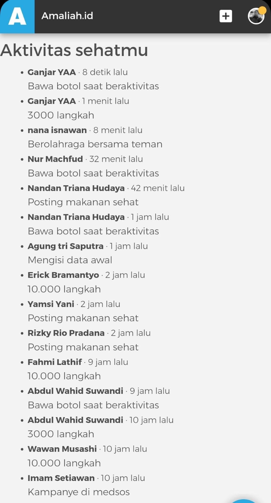 *Petualangan Marbot*Rasanya, Petualangan Sehat AGI itu memang menyasar para marbot. Panitia AGI menyadari, bahwa perjuangan marbot untuk bertubuh ideal itu berat. Lihatlah body-body kami Masjid Astra YAA, rata-rata kelas berat. Mas Shendy misalnya, karyawan Gen Z YAA. Selama hampir 2 tahun di YAA bobotnya naik 20-30 kg. "Banyak makanan di Masjid, ada saja yang kirim berkat," jelas Shendy, mengungkap penyebabnya. Di Petualangan Sehat AGI, kita 'dipaksa' sehat. Caranya dengan melakukan aktivitas dan kampanye ringan. Reward poinnya banyak, ada pemenang mingguannya. Contohnya, pagi ini saya jalan kaki 4.161 langkah dan membawa tumbler, saya upload di Petualangan Sehat AGI dan otomatis dapat 30 poin. Akan keren banget bila Marbot Astra se-Indonesia ikut gerakan ini, bukan hanya dapat sehat tapi insyaallah sehati. Berikut cara ikutannya :