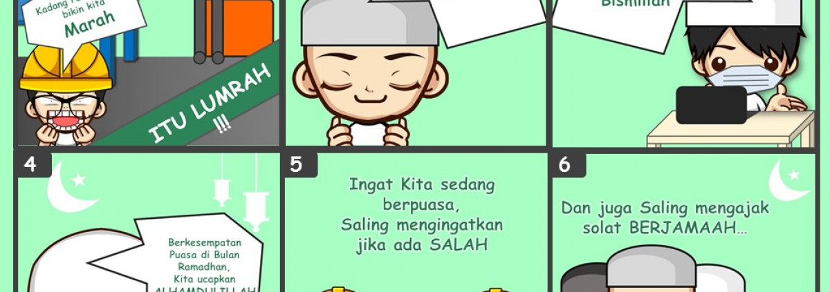 Poster komik pesan semangat teamwork dan Ibadah di Lingkungan kerja