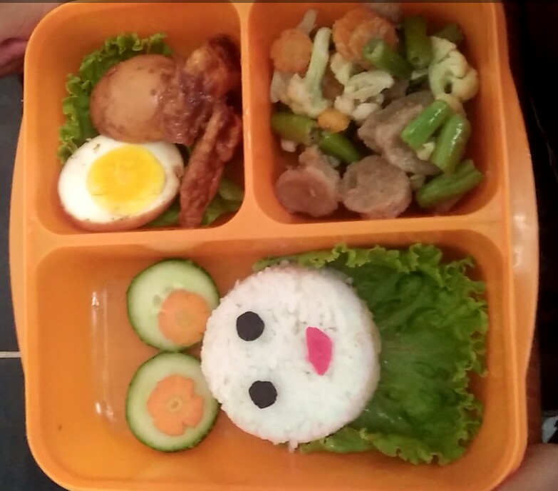 note: tambahkan nasi & hias sesuai selera, agar anak-anak juga lebih semangat menghabiskan bekalnya